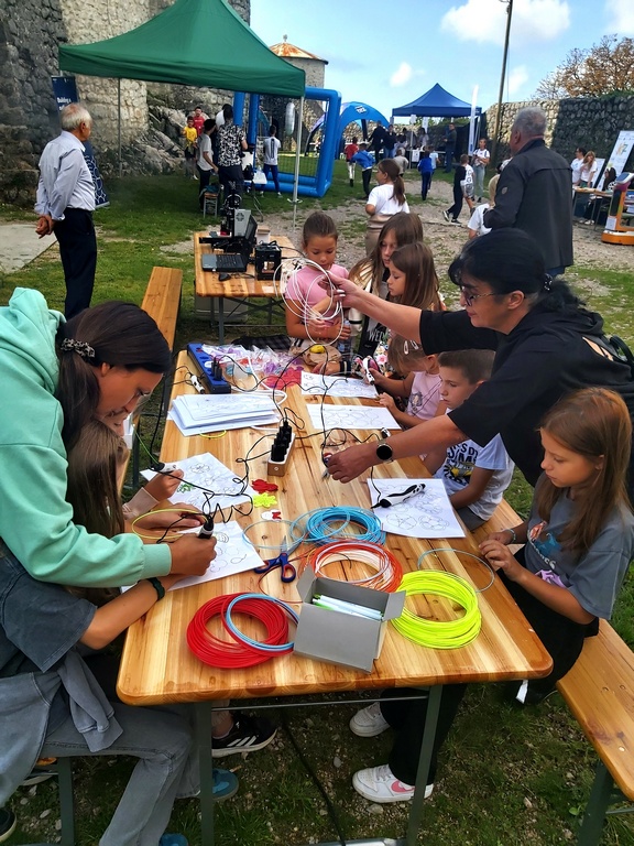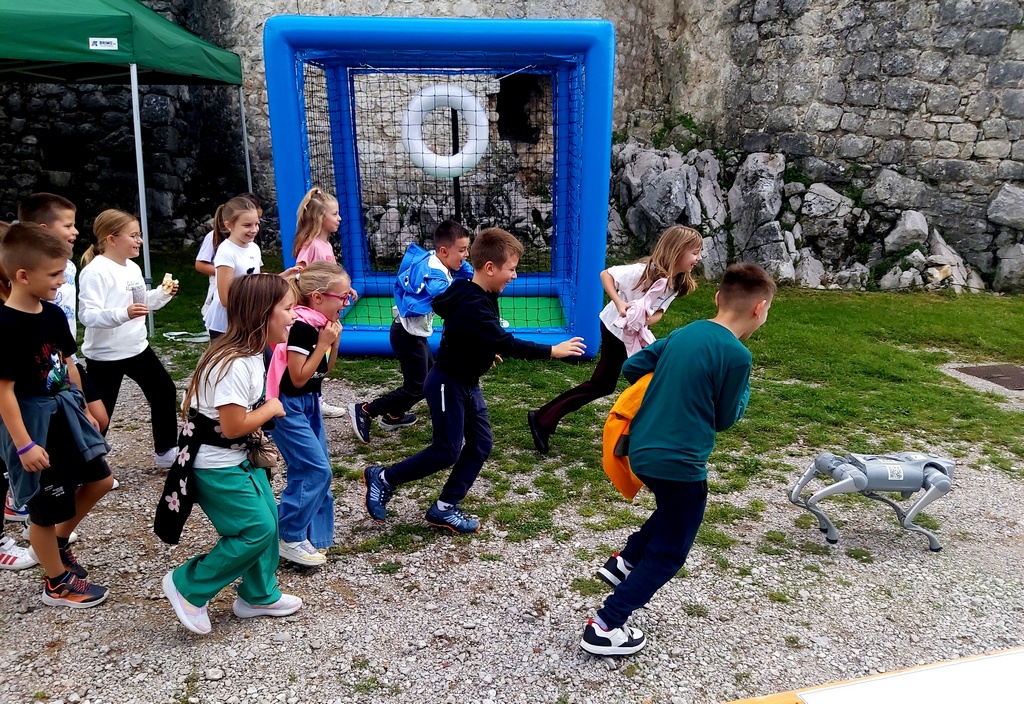 udjelovali smo na svečanom otvorenju Centra za kreativnost i popularizaciju znanosti – Grad Grobnik koji je jedinstvena institucija u Hrvatskoj i šitoj regiji. Misija Centra je stvoriti sigurno mjesto za istraživanja i učenje kroz pogreške, gdje se potiče radoznalost, a pogreške se ne doživljavaju kao neuspjeh, već kao prilika za rast. U Centru se promiče interdisciplinarni pristup učenju, povezujući STEAM s kreativnim radionicama, uz naglasak na postavljanje pravih pitanja i donošenje promišljenih odluka. Posebnost otvorenju dao je robotski pas Ben – čija prisutnost nije bila samo tehnološki dodatak, već pravi most između znanosti i igre — pokazatelj kako je robotika pristupačna, zabavna i inspirativna za najmlađe.